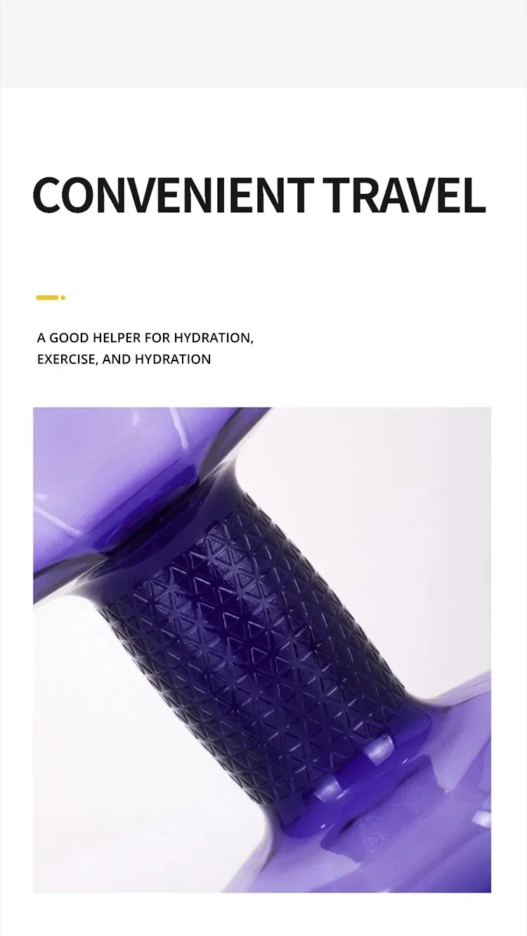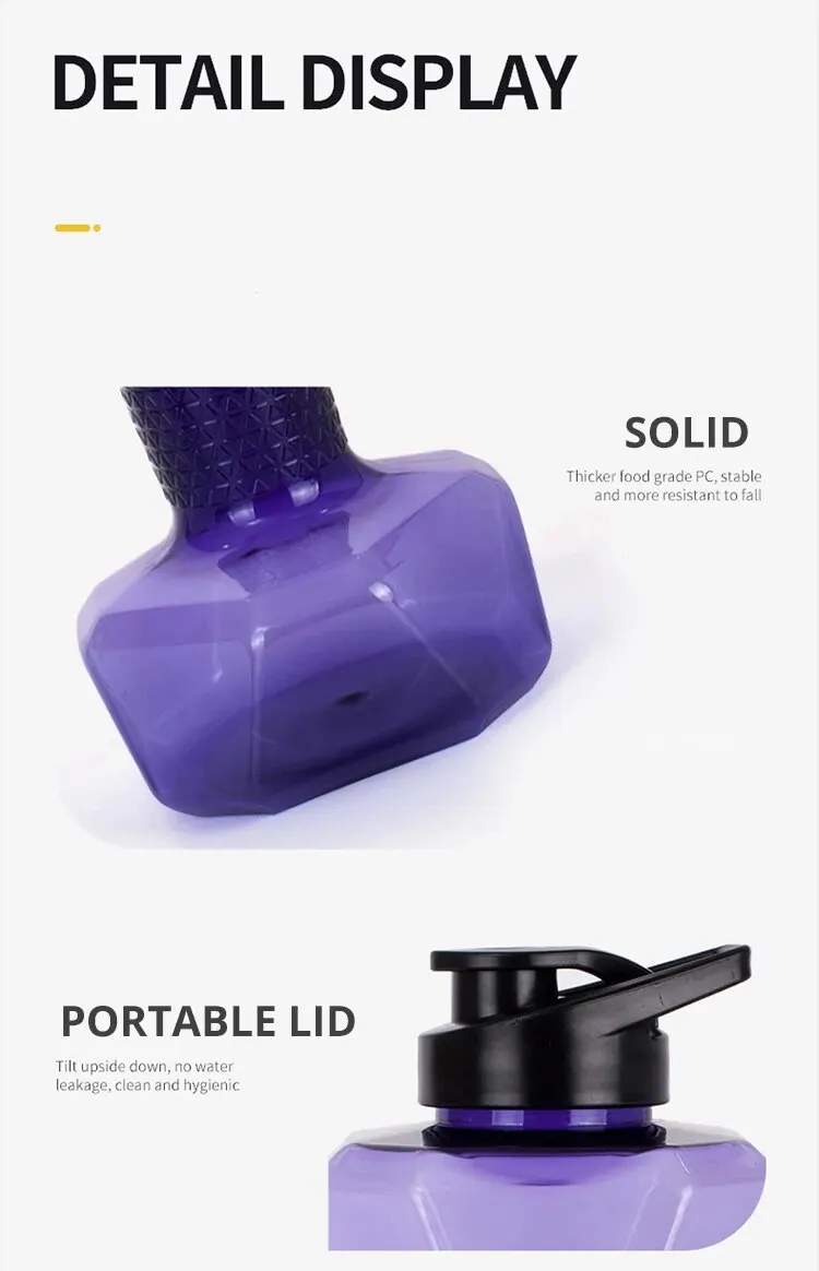 Stay hydrated in style with our exclusive 1500ml dumbbell-shaped water bottle, designed for your intense workouts or daily hikes. Why you'll love it: - Optimal hydration for prolonged exercise. - Unique dumbbell design that inspires activity. - Made from durable plastic for everyday use. - Perfect for outdoor activities or at the office. - Lightweight and portable for easy transport. This premium water bottle not only serves a functional purpose but also adds a motivational touch to your fitness routine. Its distinctive dumbbell shape is sure to turn heads and is a great addition to your fitness gear collection. To use, simply fill the bottle with water or your favorite beverages and take it along to your workouts or during your day at the office. Don't miss out on this exclusive water bottle that will revolutionize your hydration experience. Order now and elevate your workout sessions!