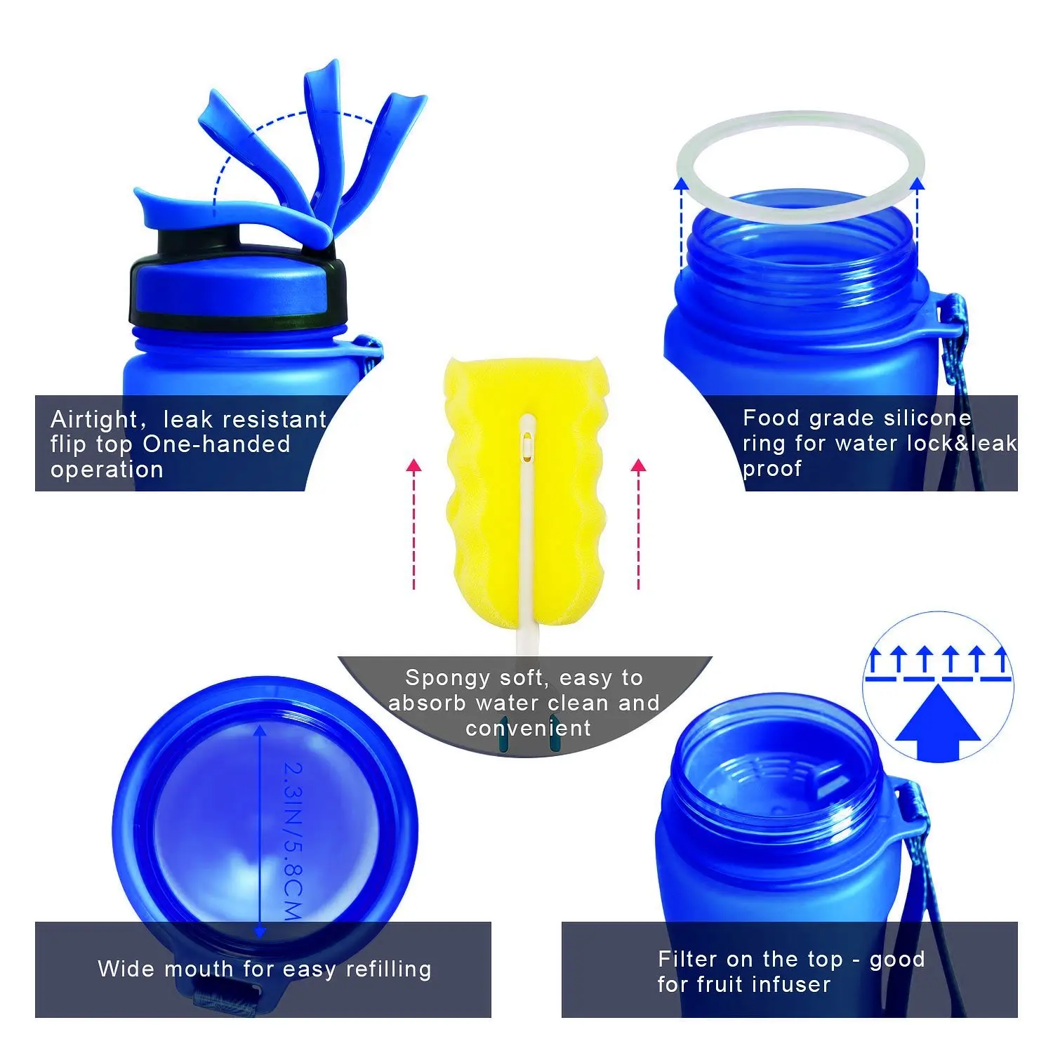 Stay hydrated on the go with our premium Lightweight BPA-Free Sports Water Bottle, designed for athletes and active individuals alike. Why you'll love it: - Made from high-quality, food-grade Tritan Copolyester. - Unique leakproof lid and quick-pour spout for instant hydration. - Practical measurement markings to track your water intake. - Durable strap for easy carrying during workouts or travel. - Available in various colors, making it a perfect gift for anyone. This exclusive sports water bottle is crafted without BPA, ensuring a safe and healthy hydration experience wherever you are. Its patented design allows for one-handed use and features a convenient click-to-open mechanism for quick access. Simply fill the bottle with your favorite beverage, ensure the lid is securely closed, and enjoy hydration anytime, anywhere. Don't miss out on this limited-time offer – get your portable sports water bottle now and experience instant refreshment on the go!